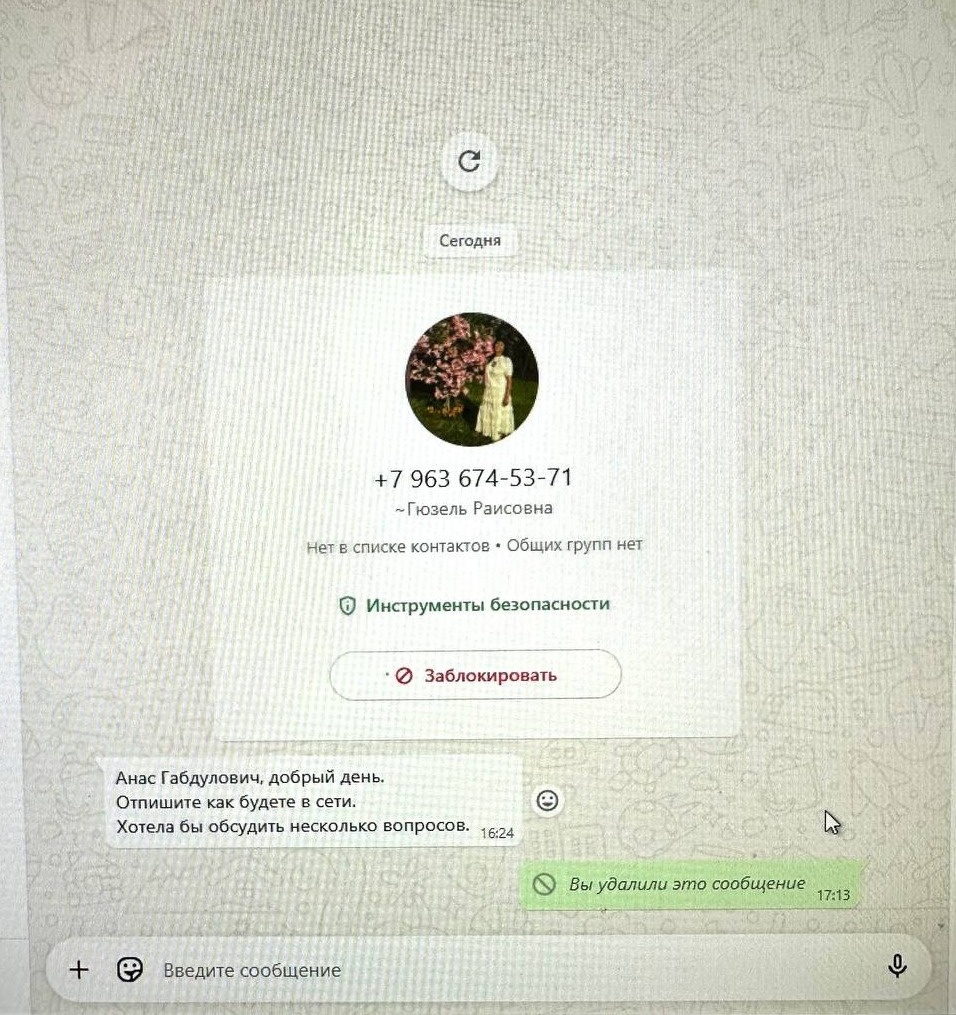 Глава администрации Иглинского района Гюзель Насырова в своих соцсетях предупредила о мошенниках, которые создали поддельный аккаунт в WhatsApp от ее имени. По ее словам, аферисты отправляют жителям подозрительные сообщения. «Будьте осторожны, я никогда не прошу денег или конфиденциальной информации через мессенджеры. Если вам пришло такое сообщение, не переходите по ссылкам и не переводите деньги. Немедленно позвоните в администрацию района по номеру 8 (347) 95-21-035. Будьте бдительны!» — написала глава муниципалитета в соцсетях. Читайте также «Я подвела семью! Жители Башкирии рассказали, как стали жертвами мошенников».