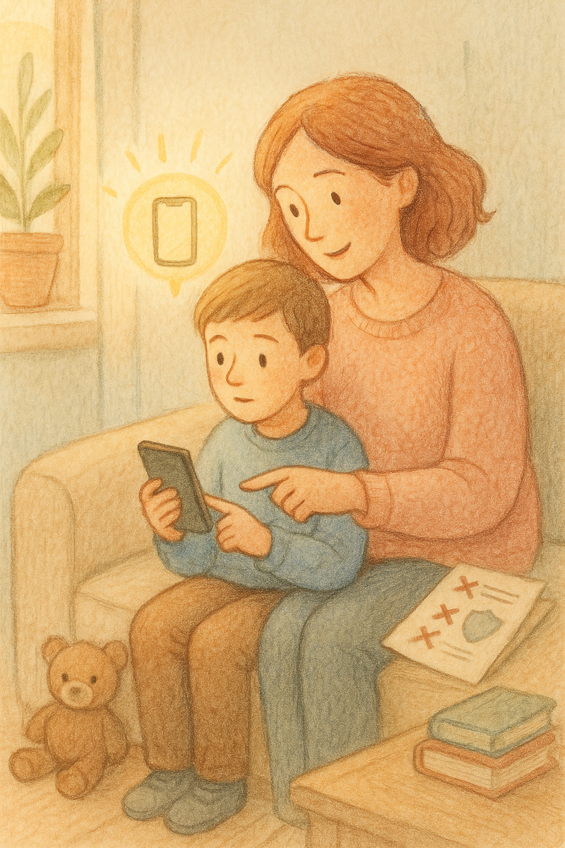 Раз в неделю 60 минут без телефонов: пирог, чай, лампа. Задача — обсудить «сложные вещи» без оценок. Формулировка: «Расскажи, что тебя удивило в сети и почему».