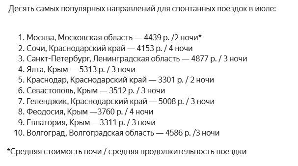На первом месте среди популярных направлений второго летнего месяца оказалась Москва. На втором месте — Сочи, а на третьем — Санкт-Петербург. Попал в десятку и Волгоград, при этом, поразив высокими ценами на жилье для туристов. За ночь здесь просят по 4586 рублей. Это больше, чем в Москве (4439 рублей) и Сочи (4153 рубля). Выше цены только в Санкт-Петербурге, где ночь обойдется в 4877 рублей. Ранее мы рассказывали, куда можно отправиться из Волгограда, позабыв про пересадки. Новости Волгограда читайте в удобном формате в нашем телеграм-к