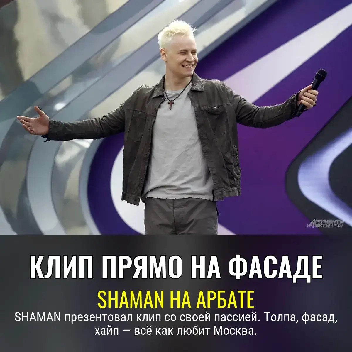 Не концерт, а фасад — модерн-тусовки на Арбате заиграли новыми красками, ведь SHAMAN с Екатериной Мизулиной (да, "той самой") презентовал клип прям на медиафасаде, приковав сотню фанатов и случайных зевак. 🦄 Режиссёр тут же помаячил, Чурикова сделала пафос, а сам SHAMAN вещал о "процессе" и Интервидении. Свадьбы не будет — предложение не спешит., Следите за новостями 📩