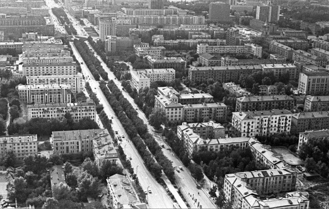 Свердловск. Вид на проспект Ленина с высоты птичьего полёта — участок от улицы Восточной до улицы Луначарского. Автор фотографии: А. А. Грахов Фото, 1960–1979 гг. #Екатеринбург #Свердловск #СтарыйЕкатеринбург #СтарыеФотоЕкатеринбург #ЕКБ #АрхивныеФото #Ностальгия #ИсторияЭтоНеСкучно #История #ретрофото Мы ценим ваши реакции 👍, а Ваши комментарии вызывают неописуемое восхищение.👍 Поддержать канал ❤️ 📣 Чат группы 🔥🔥🔥 Мы в ВКонтакте ™️ Мы в Telegram ✈️ подпишись 🔛