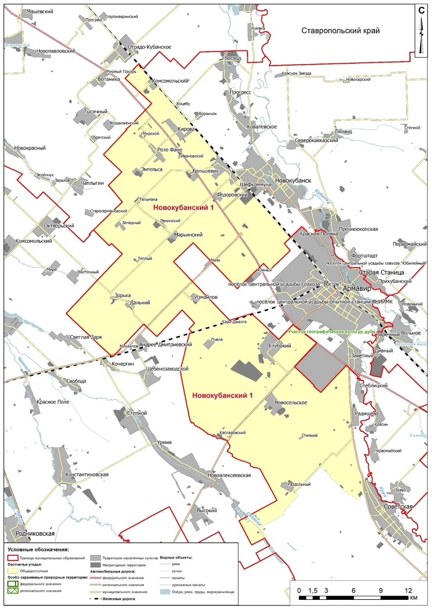 Западная: от точки с координатами 44.752453° с.ш., 40.985854° в.д. в северо-западном направлении по границе Новокубанского района до исходной точки.