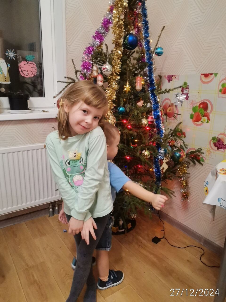 - Почему на ёлке полоски, как на кабачке? - спрашивает Агния.