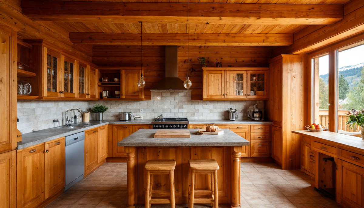 Стиль кухни должен гармонировать с общим интерьером деревянного дома, подчеркивая его естественную красоту и тепло.