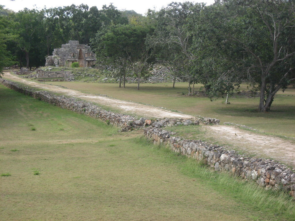 Но это мнение обнуляет наличие сохранившихся до сих пор широких каменных дорог с местным названием сакбе. Термин "sacbe " означает "Белая дорога ". Возможно, потому что они были изначально покрыты известняком.