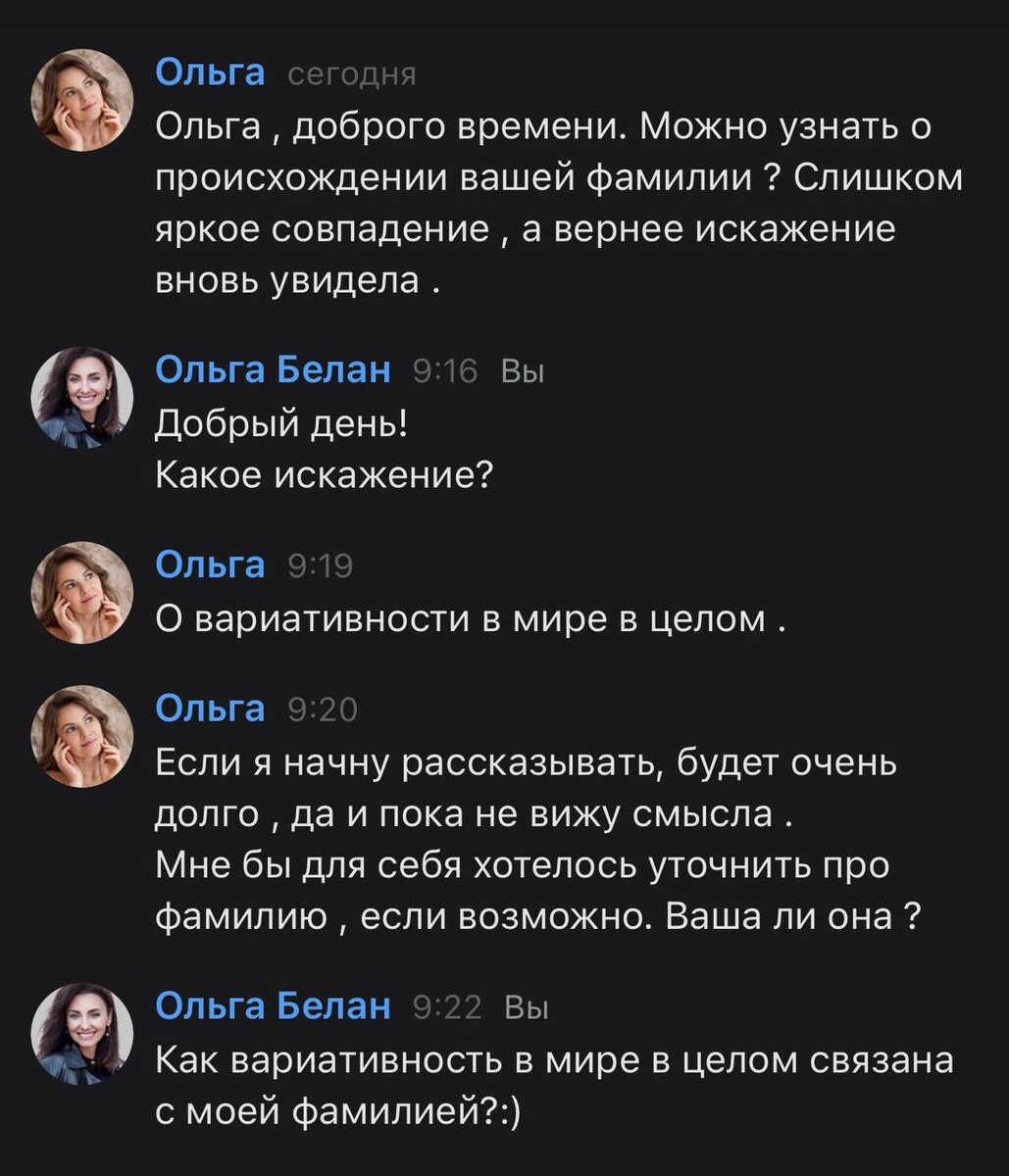 Опять про нее… про фамилию Недавно незнакомая девушка прислала мне забавное сообщение (см. фото), но наш диалог не сложился — она меня заблокировала. Тем не менее, эта переписка вдохновила меня сегодня снова поговорить о фамилии (начало читайте здесь). Представьте, что ваша фамилия — это не просто набор букв, а настоящий код вашей судьбы, зашифрованный поколениями. Родители передают его нам, официально подтверждая свой статус отца и матери, словно тайный рецепт жизни, который определяет не только наши возможности, но и испытания, и предназначение. Род — это живая система, состоящая из ролей и задач. Этой теме я посвятила три недели постов в прошлом году — кому интересно, начните читать отсюда. Это могут быть целители, миротворцы, хранители пространства, маги, архитекторы, даже таможенники и прочие — все они служат одной цели: через нас род воплощает свои уроки и миссии. Фамильный код — не просто слово, это сложный комплекс даров, талантов, потенциалов и родовой памяти, которая вл