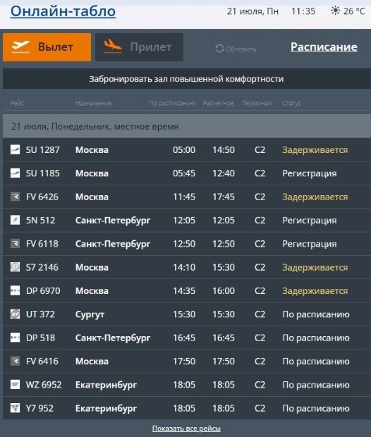 В общей сложности сейчас в Волгограде на вылет в Москву задерживаются четыре рейса. Их планируют отправить в столицу не раньше второй половины сегодняшнего дня. По прилету аналогично задержаны также еще четыре рейса. Так, начала вылета сейчас ожидают пассажиры рейса SU 1287 «Аэрофлот». Самолет должен был отправиться в Шереметьево сегодня в 05:00 утра. Теперь вылет состоится не раньше 14:50. Вместе запланированных 1:45 рейс FV 6426 авиакомпании «Россия» в Шереметьево взмоет в небо с пассажирами аж в 17:45. Точно такая же участь постигла рейс до Домодедово S7 2146 S7 Airlines. По расписанию вылет должен был состояться в 14:10, но теперь это случится не раньше 15:30. Еще один задерживающийся рей, рейс «Победы» DP 697. Вместо 14:35 воздушное судно полетит в Шереметьево в 16:00. По прилету в Волгограде продолжают ждать рейс SU 1286 «Аэрофлота» из Шереметьево. Самолет, ориентировочно, прибудет только в 14:00. То же самое и с рейсом FV 6425 «России». Его прибытие перенесено на 16:45 вместо 10