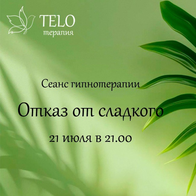 Доброе утро! ☀️ 🍫 Сегодня проведу бесплатный гипнотический сеанс «Отказ от сладкого». 🗓 21 июля в 21:00 📍 Сеанс пройдет в группе 🍃TELOтерапия | Ольга Келиш ⚠ Записи не будет! Что мы будем делать: — снимем стресс — уберём главный пусковой механизм переедания. — мягко снизим тягу к сладкому; — поставим тактильный триггер на спокойное отношение к сладостям; 🌿 Без силы воли и строгих запретов — только мягкая работа с подсознанием. ⚡ А ещё скоро стартует групповая терапия по снижению веса 📍 Онлайн, из любой точки мира. ✨ Предварительный набор «Гипнотерапия лишнего веса» ❤️ А сегодня вы можете почувствовать эффект гипносеанса на себе. ✍🏻 @olga_terapi