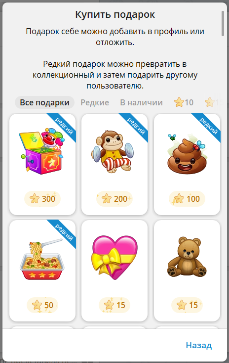 Бесплатные подарки в ТГ — это уже не шутка, а реальный тренд 2025 года. Telegram не просто мессенджер, а целая NFT-экосистема с кейсами, дропами, маркетами и бонусами. И да, получать подарки в Telegram можно абсолютно бесплатно — если знаешь, где искать. В этой статье расскажу, как забрать дропы, откуда берутся бесплатные кейсы, зачем всё это нужно и где это потом продавать. Погнали! Подарки в Telegram — это NFT-объекты, которые можно дарить, получать, коллекционировать и даже продавать за реальные деньги. Некоторые из них стоят десятки тысяч рублей. Всё это оформлено красиво: в виде анимированных объектов, стикеров, эмодзи и статуса в профиле. Есть подарки обычные, а есть редкие — например, Cupcake, PEPE, Eagle или Heart Box. А теперь — главное: бесплатные подарки реально существуют, и раз в месяц Telegram или сторонние Telegram-приложения устраивают дропы и бонусы. Вот ТОП способов: Самый популярный способ — Telegram-приложения с рулетками и кейсами. Пример — EasyGift, где можно полу