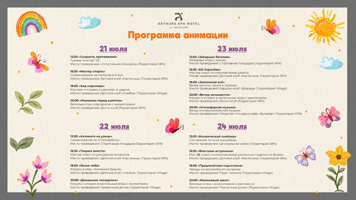Программа анимации на будни с 21 по 24 июля☀️💃🕺