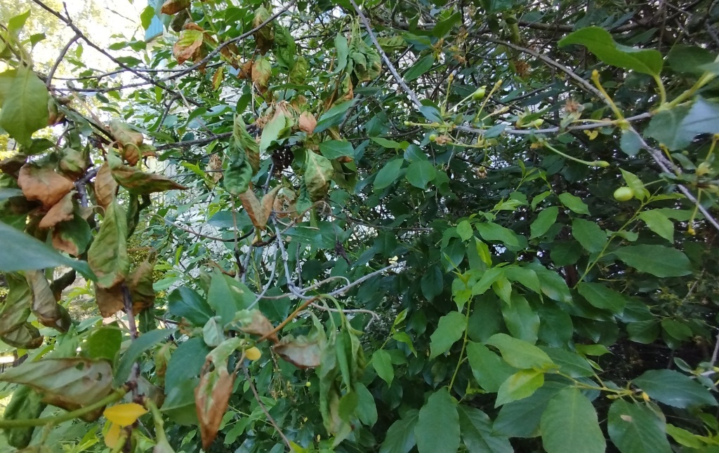 значительная часть урожая. Снижается количество плодов, листья опадают,