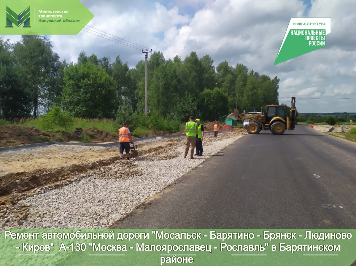 🚧Продолжается ремонт автомобильной дороги "Мосальск - Барятино - Брянск - Людиново - Киров" А-130 "Москва - Малоярославец - Рославль" в