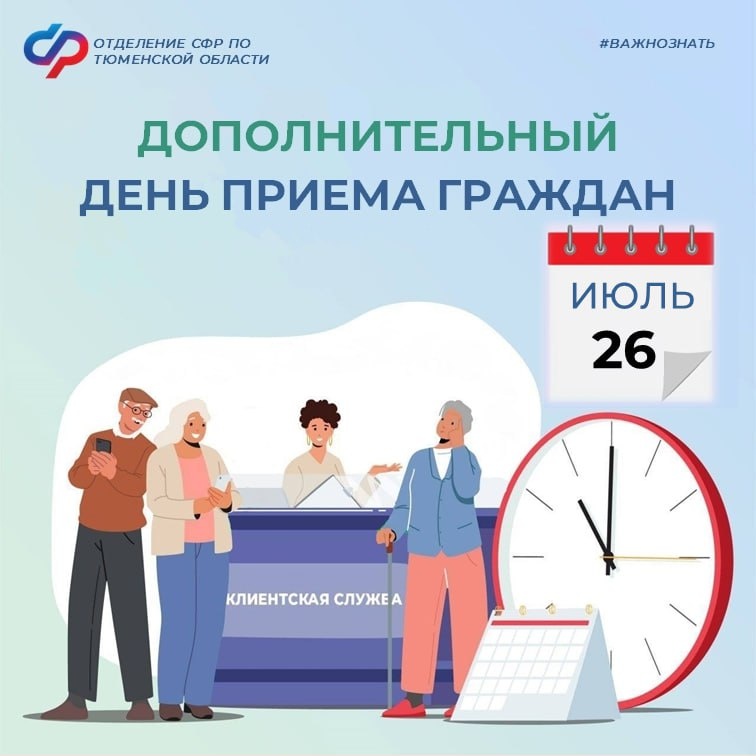 В субботу 26 июля в клиентских службах Отделения СФР по Тюменской области – дополнительный день приема граждан
