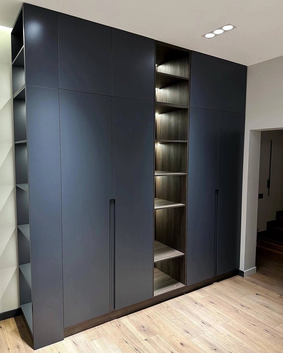🔥 Шкаф мечты — элегантность и функциональность в одном! Кто сказал, что шкафов много не бывает? Особенно таких — стильных, продуманных до мелочей и созданных для вашего комфорта! ✨ Почему этот шкаф — must-have? ✔ Бешеная вместительность — места хватит на всё; ✔ Идеальная компактность — экономия пространства без потери стиля; ✔ Глубокий графитовый оттенок — добавляет интерьеру благородства и современности. Такой эффект возможен только с встроенной до потолка конструкцией — никаких щелей, никакого беспорядка, только чистая эстетика и порядок. Как вам этот стильный «монстр» хранения?😍 💬 Пишите — создадим для вас такой же или даже лучше!