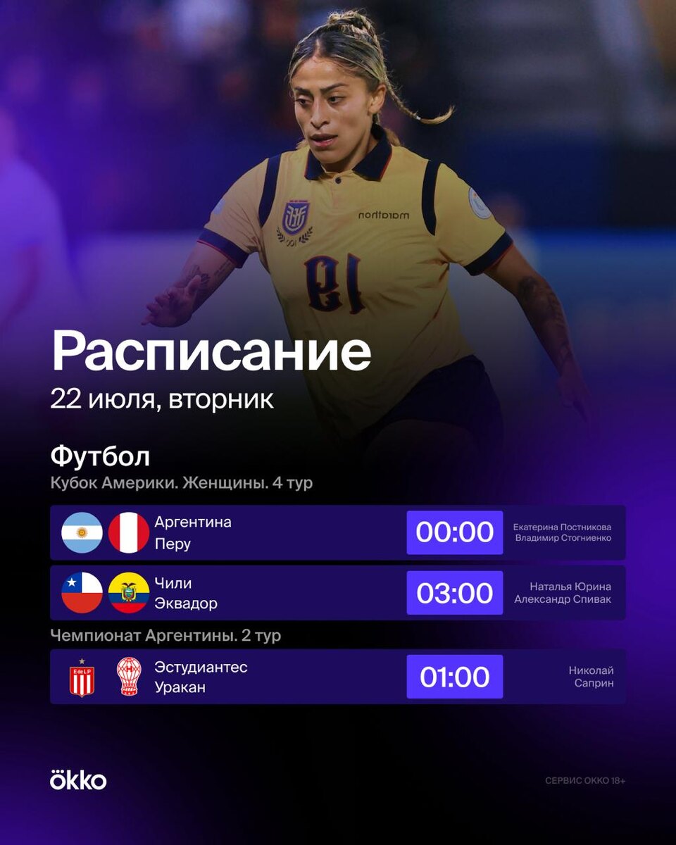 🏎 Выходные пролетели. А футбол остался. Ночью покажем два матча женской Копы и встречу «Эстудиантес» – «Уракан» в чемпионате Аргентины. Смотри в Okko! 😆
