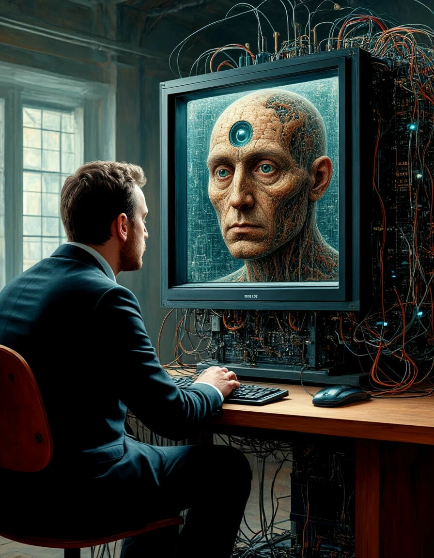 С креативными индустриями, арт-дизайнерами и т.д., потому что всё это будет делать ИИ. А что, кроме всего этого, он производит? Это вопрос власти. С другой стороны, все, кто хотят быть обманутыми, будут обмануты. Я просто советую, за вас беспокоюсь, потому что, когда вас взнуздают так, что вы в собственный туалет без разрешения ИИ зайти не сможете, тогда не плачьте.
