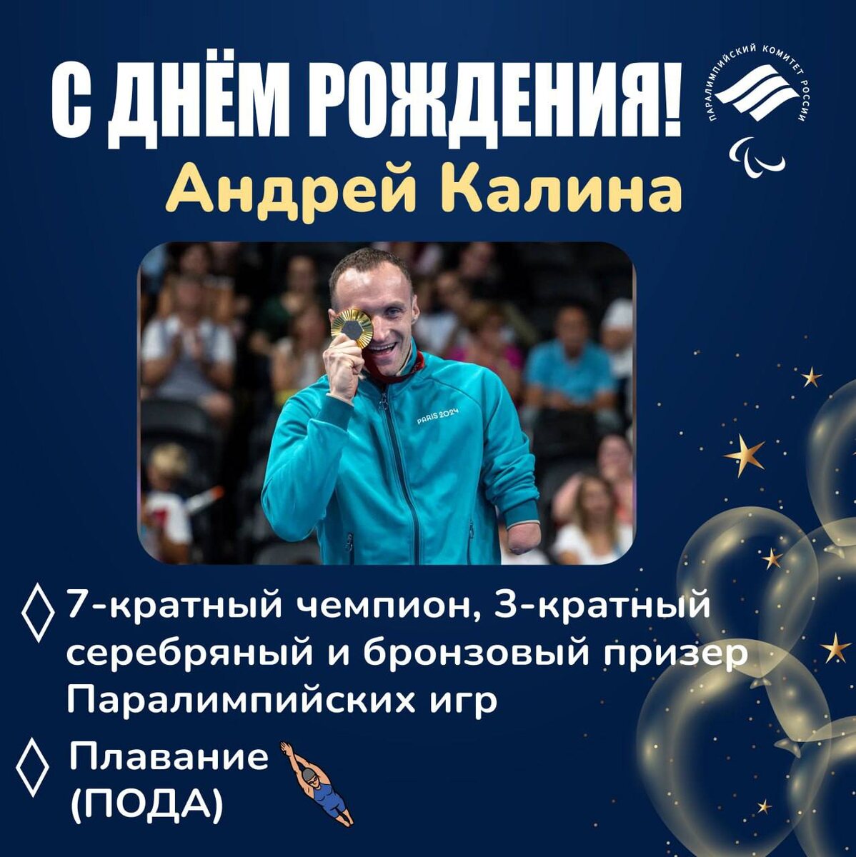🥳С ДНЁМ РОЖДЕНИЯ, АНДРЕЙ! Сегодня свой день рождения празднует Андрей Калина - 7-кратный чемпион, 3-кратный серебряный и бронзовый призер Паралимпийских игр по плаванию спорта лиц с ПОДА! 🏊🏼♂️ 🔝На прошедшей Паралимпиаде в Париже Андрей завоевал золотую медаль!🥇 Мы хотим поздравить Андрея с днём рождения и пожелать крепкого здоровья, новых побед, успехов, быстрых секунд и исполнения самых заветных желаний!✨ 🦾Подписаться на ПКР/ Поддержать канал голосом