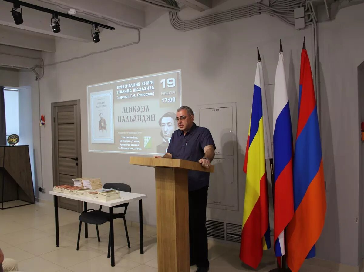 В Ростове-на-Дону 19 июля в Армянской общине прошла презентация перевода книги о Микаэле Налбандяне. Автор Ерванд Шахазиз написал ее более 100 лет назад, в 1904 году. Но только в 2025-м переводчик Гарри Григорян представил широкой публике произведение на русском языке, открыв двери к армянской культуре для русскоязычных читателей.