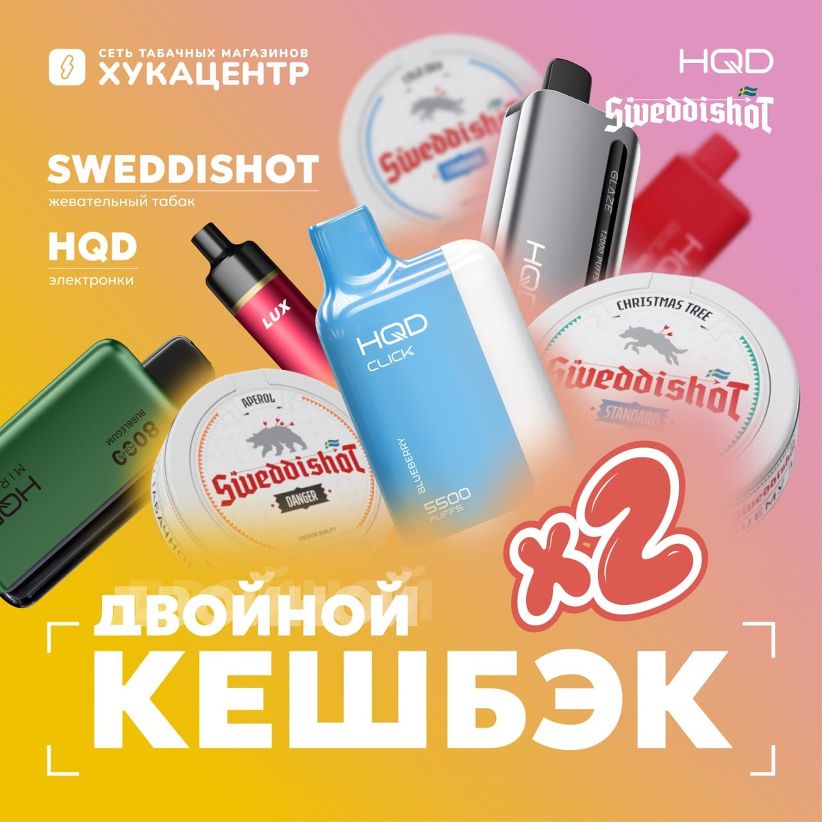 ДВОЙНОЙ КЕШБЭК НЕДЕЛИ Любишь крепкий вкус и максимум удобства? Тогда у нас отличные новости — при покупке жевательного табака SWEDDISHOT и электронок HQD ты получаешь в два раза больше кешбека! 💛SWEDDISHOT — это не просто жевательный табак Это идеальный баланс ароматики и крепости, созданный из сигарных сортов табака и оригинальных шведских ароматизаторов. 💛STANDARD — табачный лист Burley. Мягкий, сбалансированный вкус и умеренная крепость 💛DANGER — табачный лист Perique. Насыщенный, глубокий вкус с нотами ферментированного чернослива. Для тех, кто ищет нечто большее 💛HQD — флагман в мире одноразовых POD-устройств Огромный выбор устройств — от компактных моделей на 300 тяг до мощных девайсов на 30 000 тяг. Можно выбрать девайс под любую задачу — от "на вечер" до "на месяц". Множество вкусов и миксов