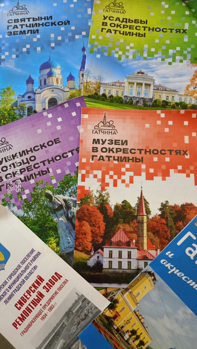 После недавней поездки в Сиверскую, изучила то "богатство", что с собой привезла из музея . Там можно было взять вот такие буклеты + карту Гатчины и окрестностей.