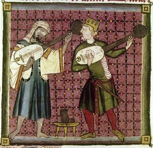 Состязание мусульманского и христианского музыкантов. Миниатюра из сборника кантиг короля Альфонса X. XIII век