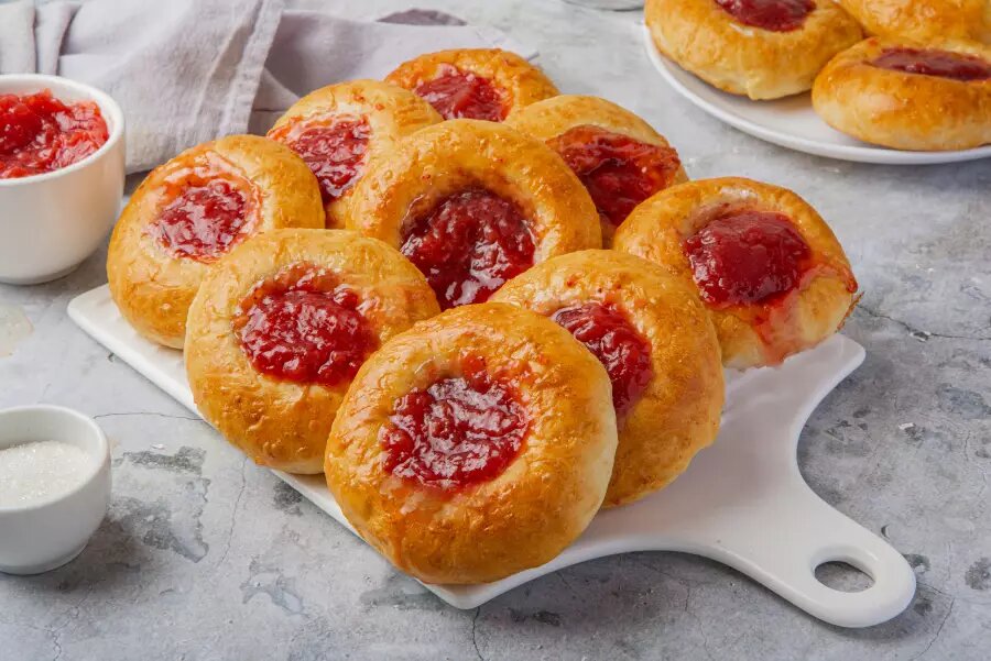 Вот простой рецепт ватрушек с повидлом: ▌ Ингредиенты: - Пшеничная мука высшего сорта — 3 стакана (~480 г) - Сухие дрожжи быстродействующие — 1 ч.л. - Сахарный песок — ½ стакана (~100 г) - Молоко коровье — ¾ стакана (~180 мл) - Яйцо куриное сырое — 1 шт. - Масло сливочное размягчённое — 100 г - Повидло яблочное или любое другое фруктово-ягодное — примерно 300 г - Ванильный сахар — 1 пакетик (~8 г) - Щепотка соли ▌ Процесс приготовления: ▌ Шаг 1: Замес теста 1. Просейте муку дважды через мелкое сито. 2. Смешайте сухие ингредиенты: просеянную муку, соль, ванильный сахар и сухие дрожжи. 3. Отдельно взбейте яйцо венчиком вместе с молоком комнатной температуры и сахаром до однородности. 4. Соедините яичную смесь с сухими ингредиентами и замесите тесто. Оно должно стать эластичным и гладким, не липнуть сильно к рукам. 5. Постепенно введите мягкое сливочное масло небольшими кусочками, продолжая замешивать тесто до полной интеграции масла. 6. Оставьте готовое тесто подходить в тёплом месте на