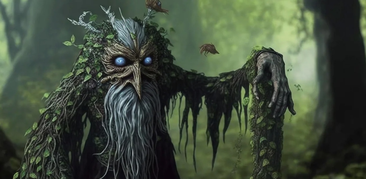 Анфиса сидела, оцепенев, глядя ему вслед. И тут… ее взгляд скользнул по спине старика. И она увидела. Увидела, как его простая рубаха и штаны вдруг словно ожили, стали меняться, переплетаться… превращаясь в платье из живых, шелестящих осенних листьев и кусочков темной коры. Шапчонка растаяла, открыв седые, спутанные волосы, в которые были вплетены сухие травинки и сосновые иголки. Но страшнее всего были «собаки». Их очертания дрогнули, поплыли… и вместо мощных псов рядом со стариком зашагали два огромных, матерых волка! Серо-стальные, с тяжелыми головами и холодными, хищными глазами. Они шли вровень с ним, не оглядываясь, их могучие лапы бесшумно ступали по опавшей листве.