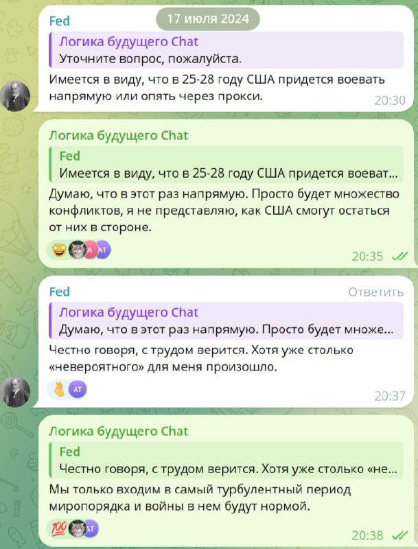 Зашел частный разговор о будущей ситуации в мире и России