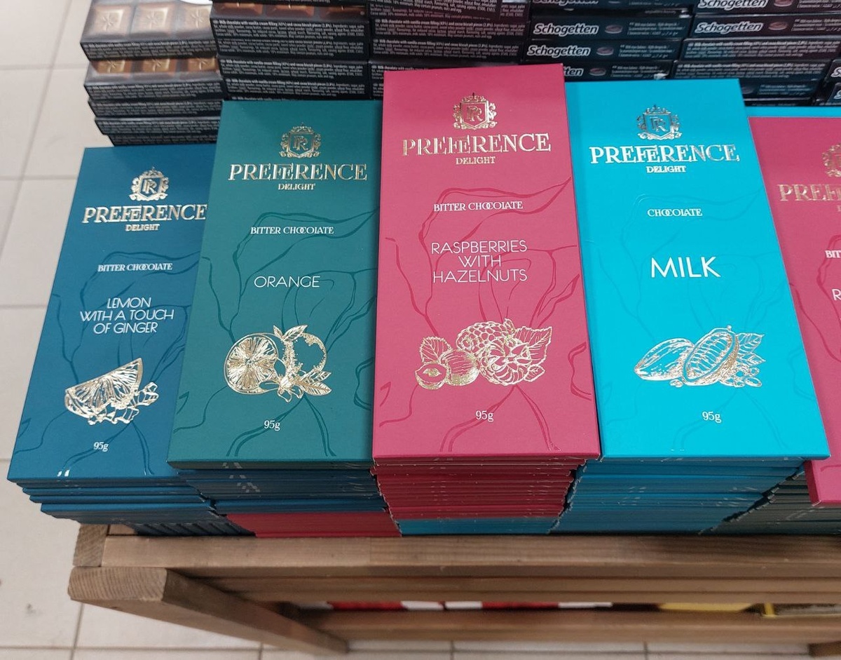 В России на прилавках магазинов заметили импортный шоколад Preference, который, однако, оказался хоть и на самом деле импортным, но не из обычных "шоколадных" стран. Он изготовлен на кондитерской фабрике "Спартак". Российский паблик «Продукт Медиа», который занимается отслеживанием новинок и интересных продуктов в магазинах, опубликовал фото шоколадных плиток, очень похожих по оформлению на шоколад из Швейцарии или Германии. «Думаете, это импортный шоколад? Нет, это Беларусь, фабрика «Спартак». Своего рода импортозамещение слишком дорогой кондитерки из недружественных стран (потому что пошлины на неё сильно повысили)», — сделали вывод авторы, «забыв», что для России белорусский шоколад тоже импортный. Тем не менее, такие плитки можно найти и на Wildberries и Ozon с доставкой по Беларуси. Стоят они весьма недешево: за две штуки темного шоколада по 95 грамм просят выше 23 рублей. То есть килограмм обойдется больше 100 рублей. Впрочем, и состав у плиток очень хороший: Никаких заменителей