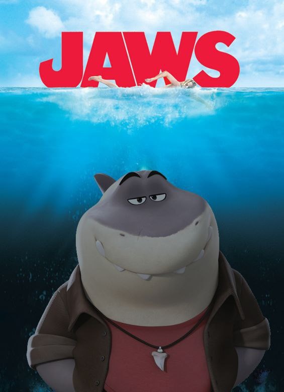 Постер мультфильма «Плохие парни 2» с отсылкой на постер «Челюстей