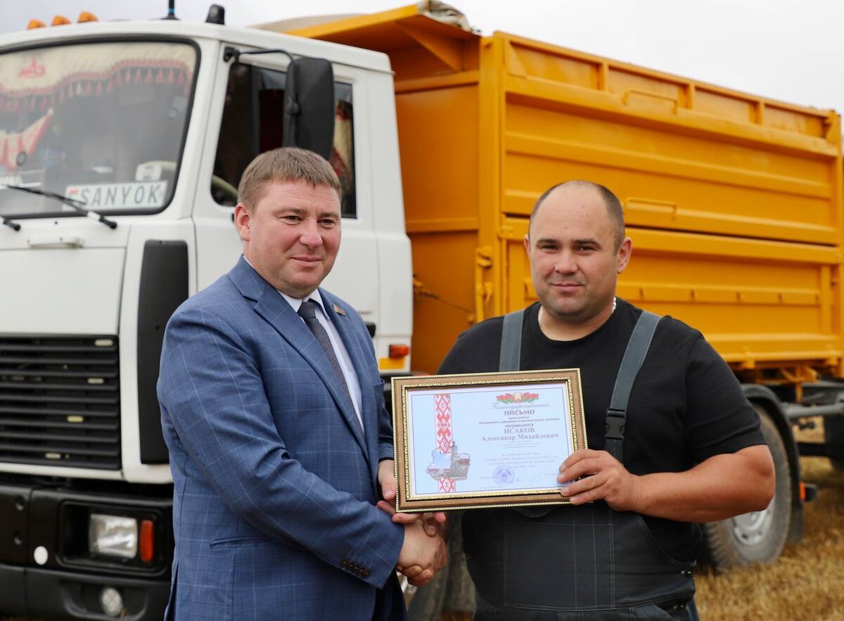 На Несвижчине - первый тысячник Водитель ОАО "Несвижский райагросервис" Александр Исаков перевез первую тысячу тонн зерна нового урожая. По традиции, передовика чествовали прямо в поле. Со словами благодарности за добросовестный труд к аграрию обратились председатель Несвижского районного исполнительного комитета Андрей Ратомский и заместитель председателя - начальник управления по сельскому хозяйству и продовольствию Несвижского районного исполнительного комитета Татьяна Жук. Поздравил первого в районе тысячника и руководитель ОАО "Несвижский райагросервис" Евгений Пекарчик. Передовик также получил подарки от Несвижской районной профсоюзной организации Белорусского профсоюза работников АПК и от ППО ОАО "Несвижский райагросервис".