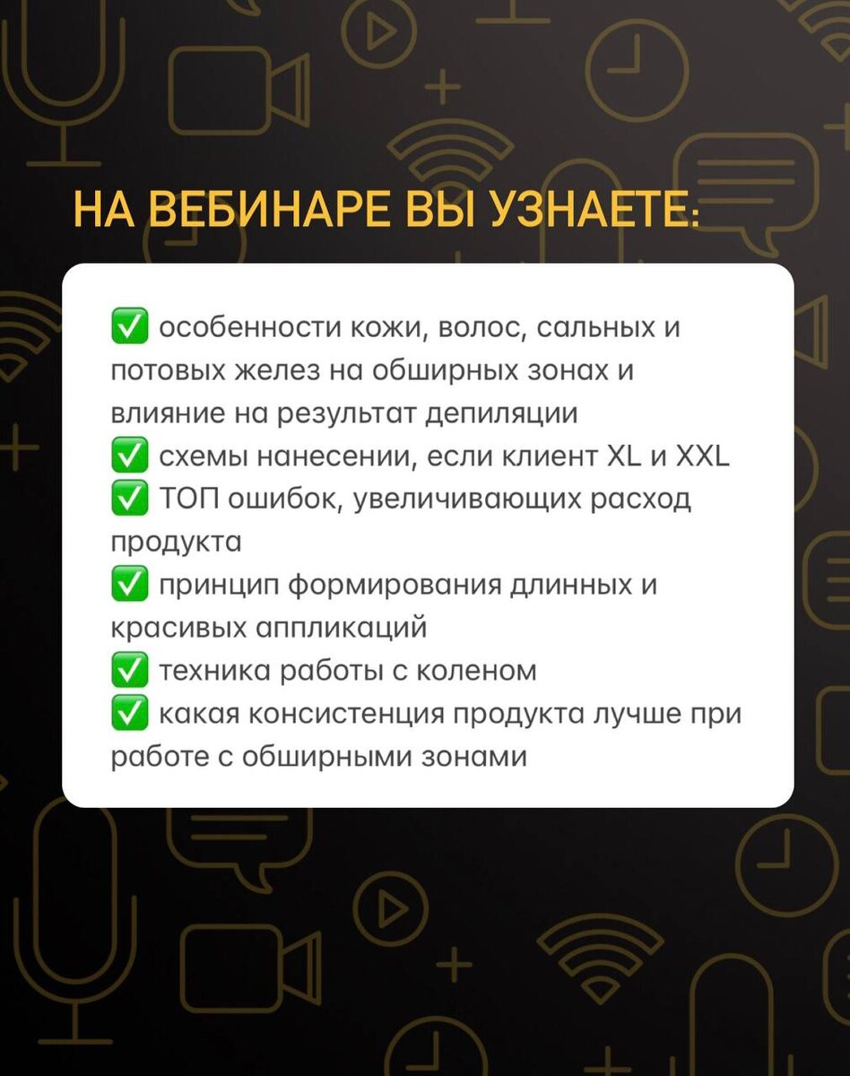 Как работать с коленом? Что такое растяжка и как нанести красивую и тонкую аппликацию? Что такое бортики и как их формировать? Как уменьшить расход при работе с обширными зонами? Приглашаем разобрать эти вопросы на практическом вебинаре с мастер-классом на модели в прямом эфире: 📍25.07.2025 в 11:00 по МСК 🔥«Техника и схемы работы полимерами на обширных зонах - секреты создания тончайших аппликаций» Время вебинара 2,5 часа. На вебинаре вы узнаете: ✅ особенности кожи, волос, сальных и потовых желез на обширных зонах и влияние на результат депиляции ✅ схемы нанесении, если клиент XL и XXL ✅ ТОП ошибок, увеличивающих расход продукта ✅ принцип формирования длинных и красивых аппликаций ✅ техника работы с коленом ✅ какая консистенция продукта лучше при работе с обширными зонами 🎁Всех участников вебинара, ждут специальные условия на покупку продукции DEPIMAX PROFESSIONAL. 💬Спикер вебинаров: Елена Кулакова - руководитель технологического сервиса ООО «Косметик Сервис» России и ЕАЭС.