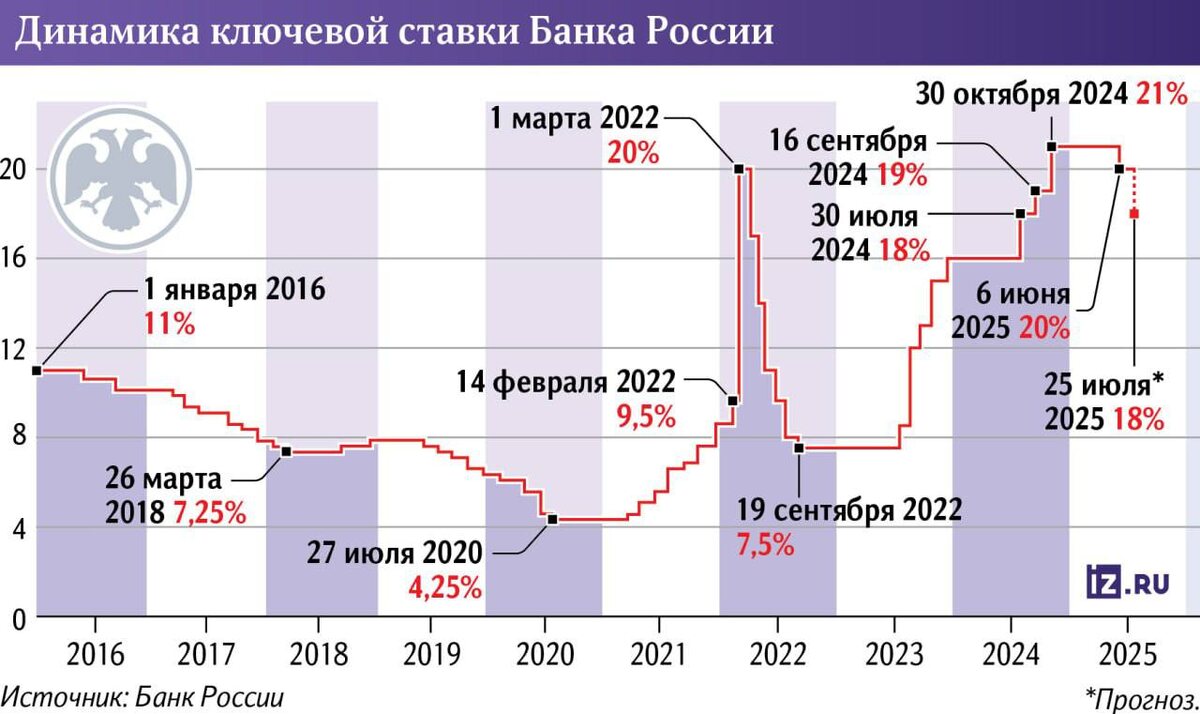 🔻 Прогноз: 25 июля ЦБ снизит ключевую ставку до 18