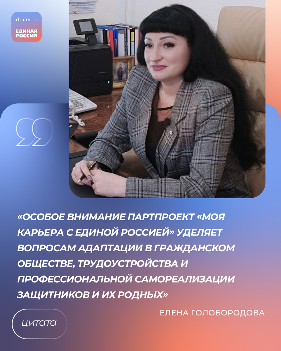 «В апреле и июне этого года по всей Донецкой Народной Республике прошли региональный и федеральный этапы Всероссийской ярмарки трудоустройства с локациями для участников СВО. Всего по результатам ярмарки работу получили порядка 200 жителей региона», – добавила Елена Голобородова.