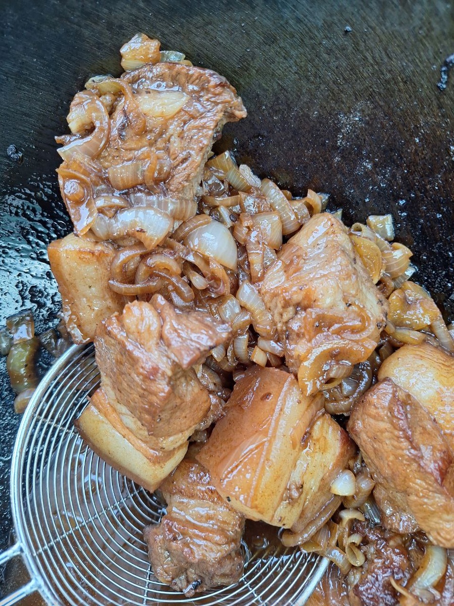 Перец по вкусу Приготовление: Мясо нарезать на порционные кусочки и выложить в глубокую посуду, залить пивом так, чтобы покрыло мясо. Оставить мариноваться на 1 час Через час пиво сливаем, кусочки мяса обжариваем в небольшом количестве раст.масла до румяной корочки. Затем перекладываем в мисочку. В глубокую сковородку при необходимости добавляем раст.масло, выкладываем нарезанный полукольцами репчатый лук, чеснок, солим и перчим. На луковую подушку выкладываем мясо, тушим при закрытой крышке 40 минут, время от времени перемешиваем. В конце приготовления пробуем на соль. Приятного аппетита!