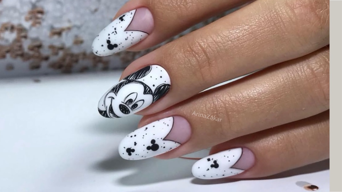 Мой фаворит — Микки в чёрно-белом стиле. Серьёзно, это такой универсальный дизайн, что его просят и школьницы, и взрослые девчонки.