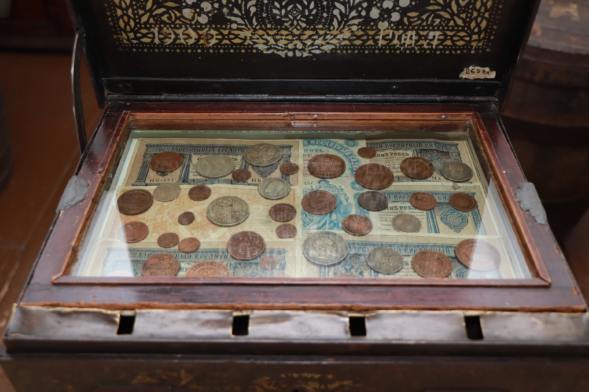 В сейфе представлены денежные знаки, находившиеся в обращении в конце XIX-начале XX веков.