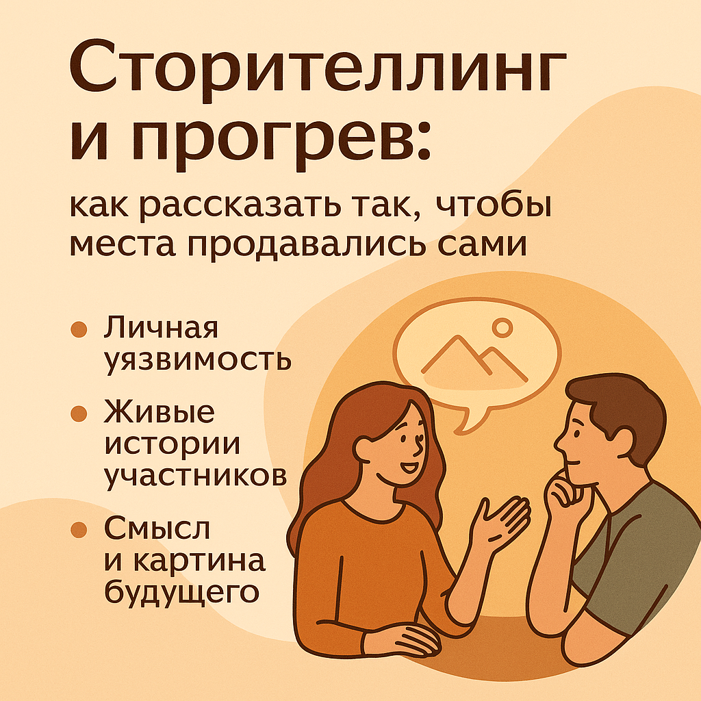 🔹 Люди запоминают не факты, а эмоции. История — это эмоция, к которой хочется вернуться. Когда ты создаёшь ретрит, особенно важно, где ты рассказываешь свою историю людям.