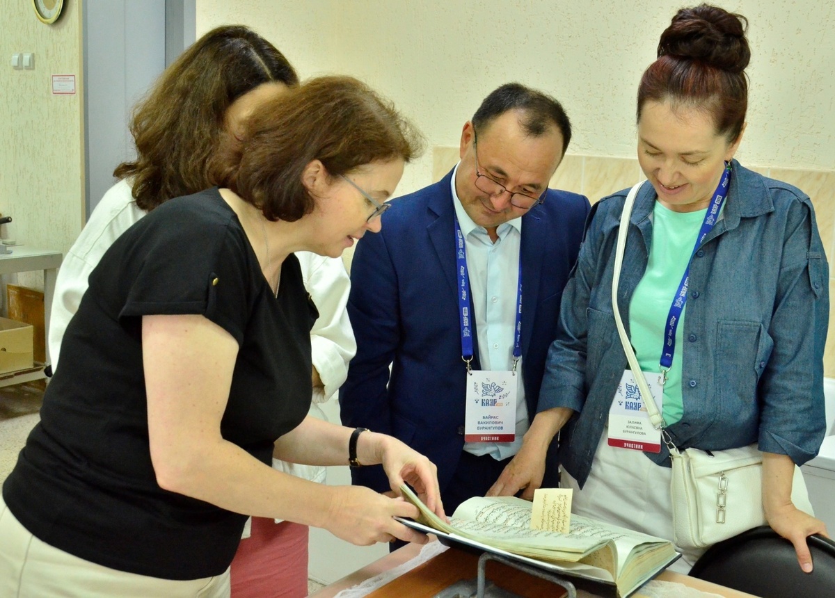 В начале июля в Перми прошел XVI Конгресс антропологов и этнологов России. В рамках конгресса в Государственном архиве Пермского края с визитом побывали ученые и архивисты из нашей республики. Национальный архив Республики Башкортостан ведет работу по установлению тесных деловых и научных контактов с региональными архивами Российской Федерации, в том числе с пермскими коллегами. Один их сохранившихся в Госархиве Пермского края документ на арабской графике привлек внимание доктора исторических наук, основоположника научного направления «Этноархивистика» Байраса Бурангулова. Необычная рукопись, отреставрированная в 2010 году, хранится в Пермском государственном краевом архиве в фонде печатных изданий как «Рукописная книга на арабском языке». Последующий профессиональный перевод отдельных листов документа руководителем Научно-образовательного центра иранистики Уфимского университета, кандидатом филологических наук Искандером Саитбатталовым показал, что судя по содержанию и внешнему виду п