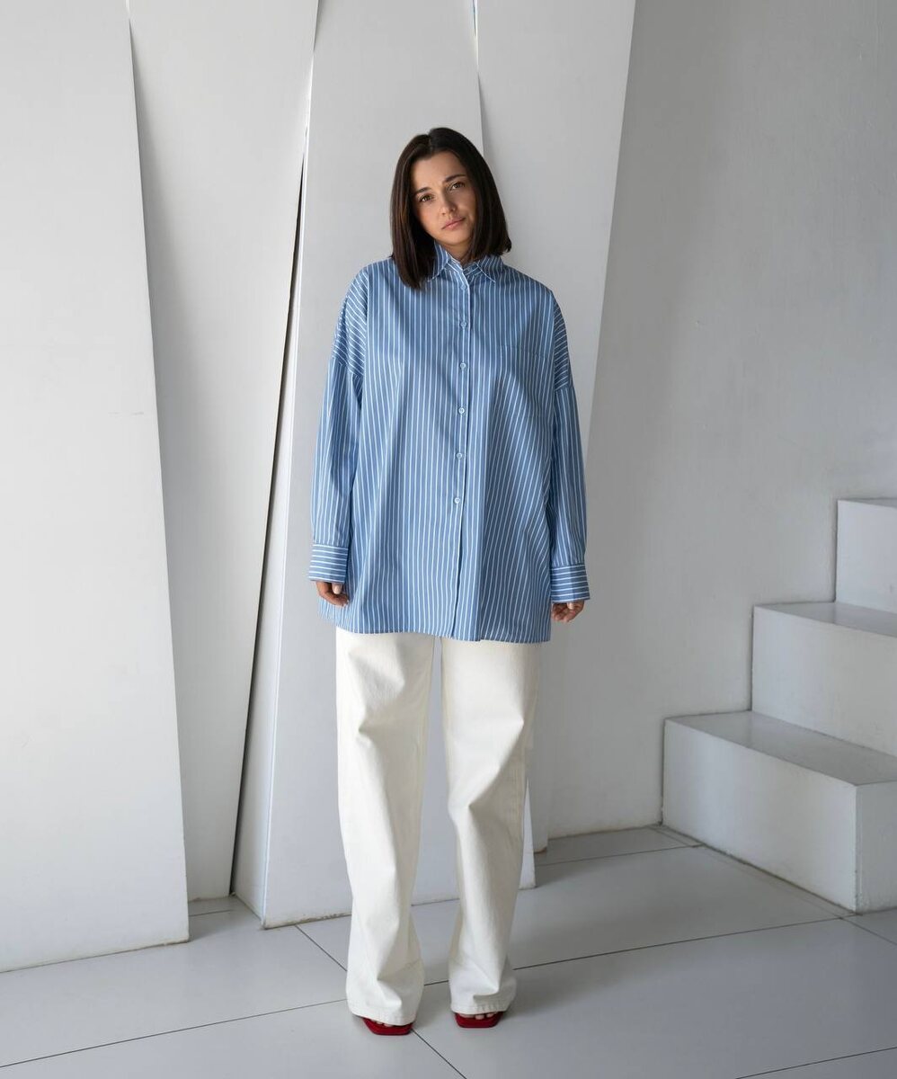 Классический пример образа рубашка + джинсы, но что в нем НЕ ТАК? 1 – Рубашка и джинсы – это не есть готовый образ. Посмотрите на фото, у меня размер 44-46, но в таком виде образ абсолютно не украшает фигуру. Одежда создана, чтобы показать наши достоинства, чтобы мы чувствовали себя комфортно. Да, безусловно, мы можем выбрать какой-то объемный верх, но с определенными вариантами стилизации: оголить запястье, расстегнуть пуговки – создать таким образом вертикальную стройнящую линию; подзаправить, если хочется. Добавить слой под рубашку в виде топа. Но когда у нас и объемные джинсы, и объемная рубашка, фигуру совершенно не видно, и получается не очень. Визуально это очень хорошо видно. 2 - В этом образе неподходящая длина джинс. Я об этом уже рассказывала. Визуально они очень длинные, стоят колом в районе коленок. Так не должно быть. Обуви не видно. Посмотрите видео, где наглядно видно, как стилизация меняет всё восприятие образа. Добавляем аксессуары, заправляем или добавляем брошь