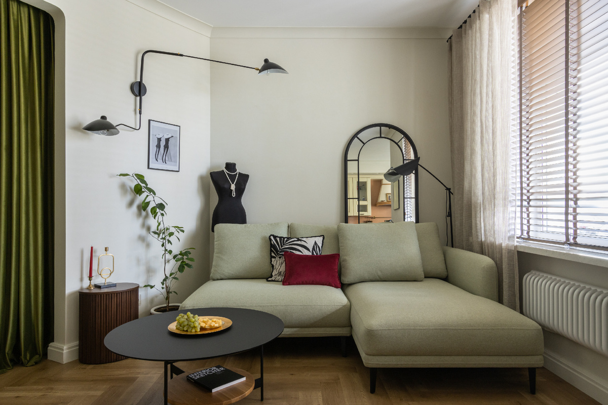 Возможно ли создать совершенно новое пространство, не прибегая к тяжелым ремонтным работам и перепланировкам? Такая задача встала перед дизайнером интерьера Марией Качкиной. Заказчице хотелось придать интерьеру больше индивидуальности и легкости, избавиться от надоевших оттенков и добавить новых красок. Смотрим, как это удалось сделать Марии Качкиной. Товары для проекта, приобретенные в салонах КУБАТУРЫ: · Свет в прихожей и над столом (бренд Eglo): «Мир света» · Пол (кварцвинил): «Слонпаркет» · Потолок (краска Dulax): «Альт-Икс» · Жалюзи: «Криалан» · Камин (лепнина Европласт): Piterra · Свет на кухне: SWG В небольшой квартире площадью 41 м² живет молодая женщина, которая часто бывает в командировках. Заказчица любит французские интерьеры, винтаж, предметы искусства и графику. Так как бюджет на реализацию был ограничен, и категорически не хотелось вмешиваться в конструктив предыдущей перепланировки, оставили без изменения все зоны в квартире, места расположения светильников и розеток,