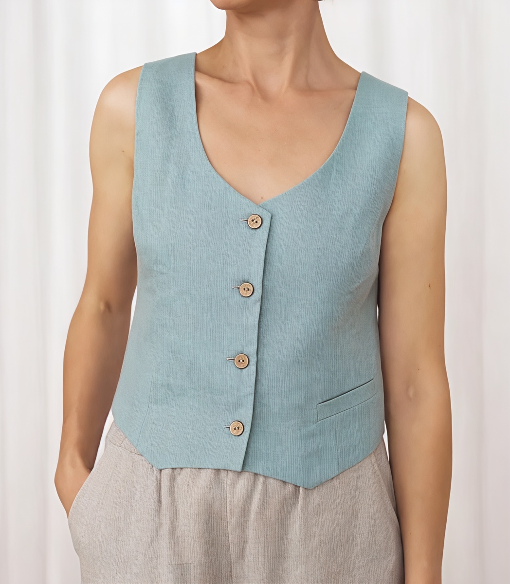 Жилет из тонкого льна или хлопка стал настоящим хитом лета. В отличие от жакета, он не сковывает движения и позволяет коже дышать, при этом мгновенно делая любой образ более собранным и элегантным.