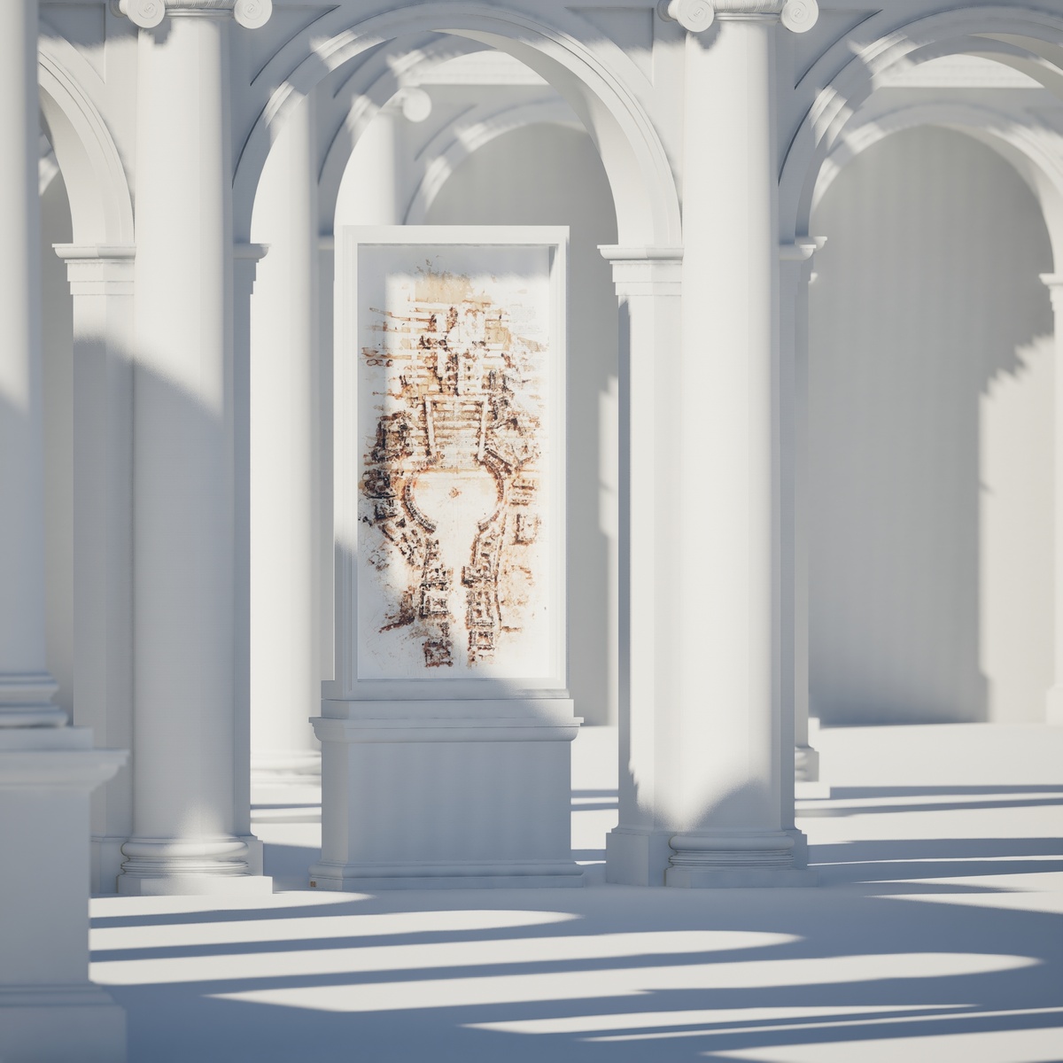 Андрей , представитель дипломатической миссии при ООН в Женеве, любил ходить пешком. Это раздражало водителя и вызывало кривые улыбки у коллег, но после восьми часов в переговорной с сухим светом, сухими формулировками и такими же сухими глазами — ходьба была единственным способом вернуть себе мысль. В тот вечер он возвращался из Цюриха. Проект культурной платформы для стран Средиземноморья официально закрылся: две делегации покинули стол переговоров, ссылаясь на "неблагоприятную атмосферу". Он шёл по набережной, тихо злился, и вдруг спрятался от моросящего дождя в маленькую галерею на Rue des Bains — не планировал ничего покупать, просто хотелось паузы и тишины. Картина висела отдельно, в углу. Не в раме — просто рулон - свёрнутая по краям, на толстой бумаге. Без ярких красок, скорее чертеж - только перо, тушь, и странный магнетизм линий. Сверху — латинские и итальянские надписи, внизу — детали, подробности. Амфитеатр, акведук, форум, фрагменты фасада. зарисовки скульптур. Не художес