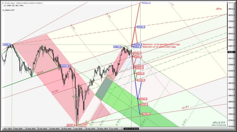 https://basechop.ru/wordpress/?p=50338 Операционный масштаб Minor (таймфрейм h4) Основные технические уровни для торговли #INDU – Daily – обзор вариантов движения c 21 июля 2025 года. Предыдущий обзор ##INDU – Dow Jones Industrial Average (таймфрейм h4) от 08.07.2025 г. 13:44 ____________________ #INDU – Dow Jones Industrial Average Промышленный индекс Доу Джонса – старейший из существующих американских рыночных индексов. Он был создан для отслеживания развития промышленной составляющей американских фондовых рынков. Индекс охватывает 30 крупнейших компаний США. ____________________ С определенной долей вероятности развитие движения #INDU-h4 с 21 июля 2025 года останется в зоне равновесия (42600.0 – 43800.0 – 45099.9 (maximum от 04 декабря 2024 года)) вил старшего операционного масштаба Minor-Daily и будет определяться отработкой и направлением пробоя диапазона: – уровень сопротивления 44864.5 maximum от 03 июля 2025 года; – уровень поддержки 44220.0 на начальной линии SSL вил…