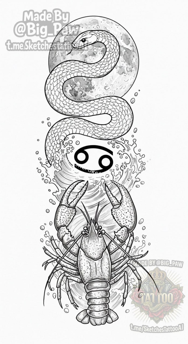 #змея #рак #знакзодиака #эскиз #тату #татуировка
