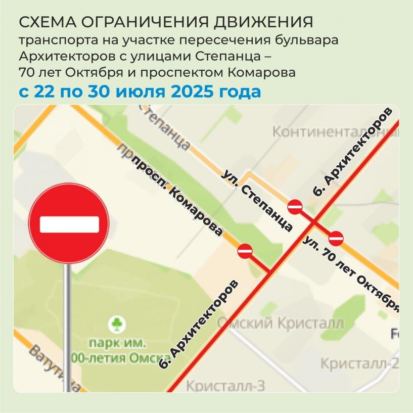 Для безопасности: часть бульвара Архитекторов в Омске перекроют на девять дней