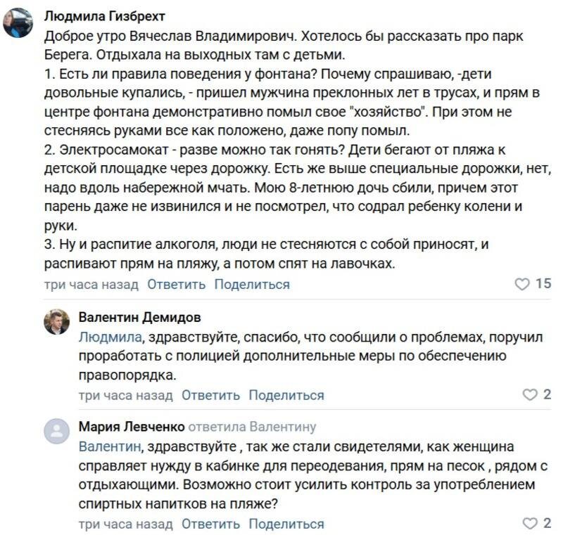 «Моют „хозяйство“ в фонтане!»: белгородцы пожаловались на очередные выходки отдыхающих на «Берегах» Жители Белгорода в очередной раз попросили властей усилить контроль за порядком на пляже «Берегов» из-за отдыхающих, которые ведут себя неприлично. По словам двух женщин, пляж посещают недобросовестные горожане, которые справляют нужду в кабинках для переодевания и моют «хозяйство»в контактном фонтане при детях. Кроме того, белгородки отметили, что на пляже никто не следит за пьяными людьми, а также за любителями самокатов, которые на большой скорости сбивают детей и даже не обращают на это внимания. На просьбы женщин отреагировал мэр Валентин Демидов, заверив, что обязательно ещё раз проработает этот вопрос с полицией. Подписаться на 🗞🗞 | Поддержать бустом