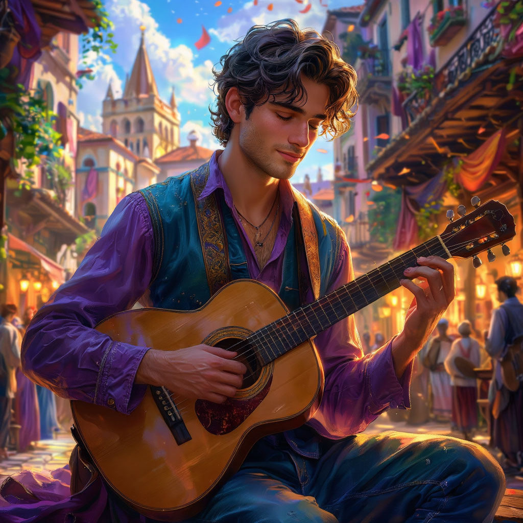 В далёком городе, где музыка была не просто искусством, а частью жизни, жил музыкант по имени Александр. Он играл на старинной гитаре, которая передавалась в его семье из поколения в поколение. Но никто не знал, что мелодии Александра обладали удивительной силой — они могли менять реальность. С каждым аккордом, с каждой нотой, которую извлекал Александр, мир вокруг него преображался. Его музыка могла вызвать дождь в засушливую погоду, заставить цветы расцвести посреди зимы или даже изменить ход событий. Люди говорили, что его мелодии были способны исцелять душевные раны и дарить надежду тем, кто её потерял. Однажды, когда город оказался на грани катастрофы из-за затяжной засухи, Александр решил использовать свою музыку, чтобы помочь жителям. Он вышел на центральную площадь и начал играть. Мелодии его гитары заполнили воздух, и вскоре небо потемнело, появились облака, и начался долгожданный дождь. Город был спасён, а Александр стал настоящим героем. Но с великой силой приходит и великая