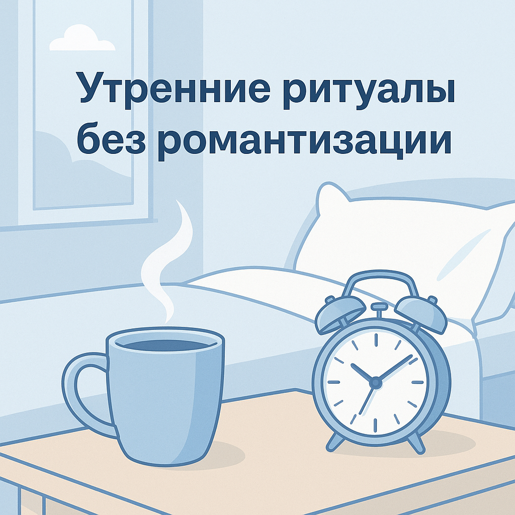 Вы тоже заметили, как часто нам предлагают «идеальные» утренние ритуалы, которые больше похожи на фильм? Просыпаться в 5 утра, медитировать 30 минут, пить зелёные смузи и делать зарядку под звуки природы… Звучит красиво, но для большинства из нас это не работает. Давайте посмотрим честно: какие утренние привычки реально помогают начать день приятно и без стресса? Звучит банально, но экономит массу времени и нервов. Это простое действие сокращает утренний выбор до минимума и бережёт вашу энергию. Не кофе, не чай, не смузи, а именно вода. Организм после сна обезвожен, и один стакан воды моментально запускает обмен веществ и пробуждает вас гораздо лучше будильника. Если нет времени на полноценный завтрак – не мучайте себя чувством вины. Банан, горсть орехов, овсянка быстрого приготовления или йогурт — вполне достаточно. Не нужно усложнять то, что можно упростить. Простая привычка, которая спасёт ваше утро от тревоги и потери концентрации. Отложите телефон хотя бы до момента, пока вы не вы