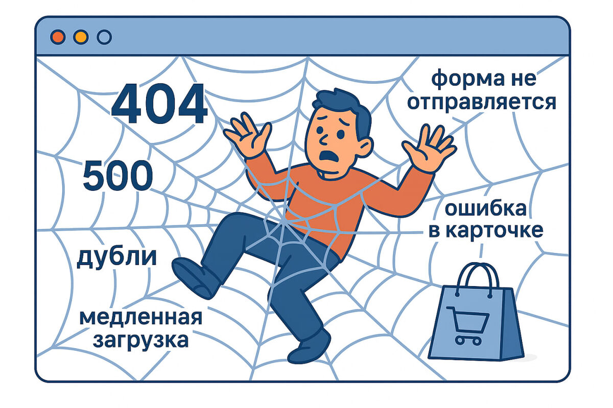Неправильная кодировка может превращать кириллицу в кракозябры. Долгая загрузка отпугивает пользователей (и поисковики это видят). Плюс, бывают единичные ошибки на конкретных страницах — например, неработающие формы или сломанные изображения.